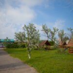 Вокруг базы отдыха в пешей доступности с одной стороны — грязевые лиманы, а с другой — залив, где можно лицезреть прекрасные закаты.