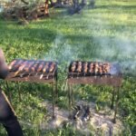- бронирование беседки + аренда мангала с аксессуарами для BBQ (решетка, шампура, котелок) + связка сухих фруктовых дров — 150 грн.