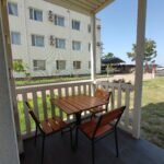 В Вашем распоряжении столовая, бесплатная охраняемая парковка, собственный пляж, оборудованный деревянными зонтами, пляжное кафе, детская площадка, BBQ зона, беседки и большая площадка перед корпусом.