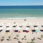 База отдыха расположена на первой линии, имеет собственный пляж, оборудованный зонтами и затененной барной стойкой с видом на море.