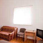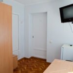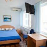 Семейный — 2-х комнатный номер площадью около 35 кв.м. (максимально возможное размещение, с учетом дополнительных мест для детей, 3-4 человека). Две изолированные комнаты с большой двуспальной кроватью, в гостиной — комплект мягкой мебели с раскладывающимся диваном. В номере современная мебель, ТВ, кондиционер. В ванной комнате — ванна, унитаз, умывальник.