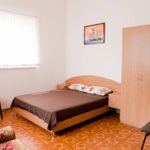 Студио — номер площадью до 26 кв.м. (максимально возможное размещение 2-4 человека в номере, включая детей). В каждом номере кондиционер, современная мебель – большая двуспальная кровать и комплект мягкой мебели с раскладывающимся диваном, ТВ, холодильник. В ванной комнате — умывальник, унитаз, душевая кабина.