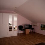 Мансарда — номер площадью до 20 кв.м. (максимально возможное размещение 2-4 человека в номере, включая детей). В каждом номере кондиционер, современная мебель – большая двуспальная кровать и комплект мягкой мебели с раскладывающимся диваном, ТВ, холодильник. В ванной комнате — умывальник, унитаз, душевая кабина.