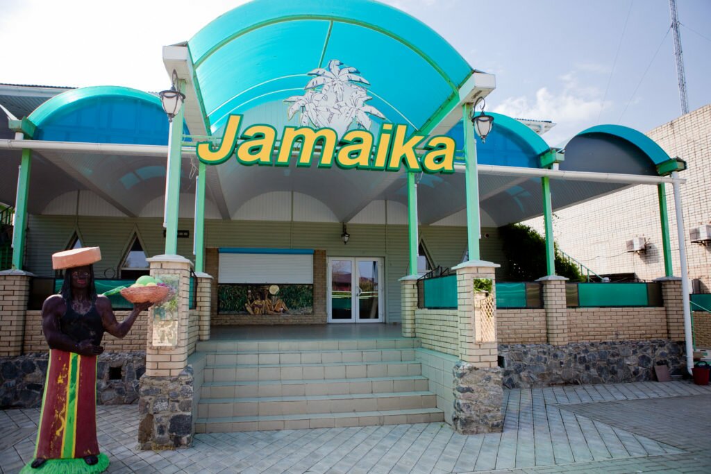 Территория гостиницы «Джамайка» закрыта и охраняема. Возле базы располагается рынок, на котором есть практически все: фрукты, овощи, жареная и вяленая рыба, азовская креветка, а также одежда, обувь, пляжные игрушки, очки и головные уборы.